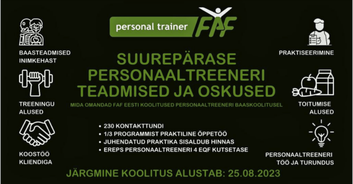 Juba 25. augustil alustab järgmine FAF Eesti koolituste personaaltreenerite baaskoolitus.