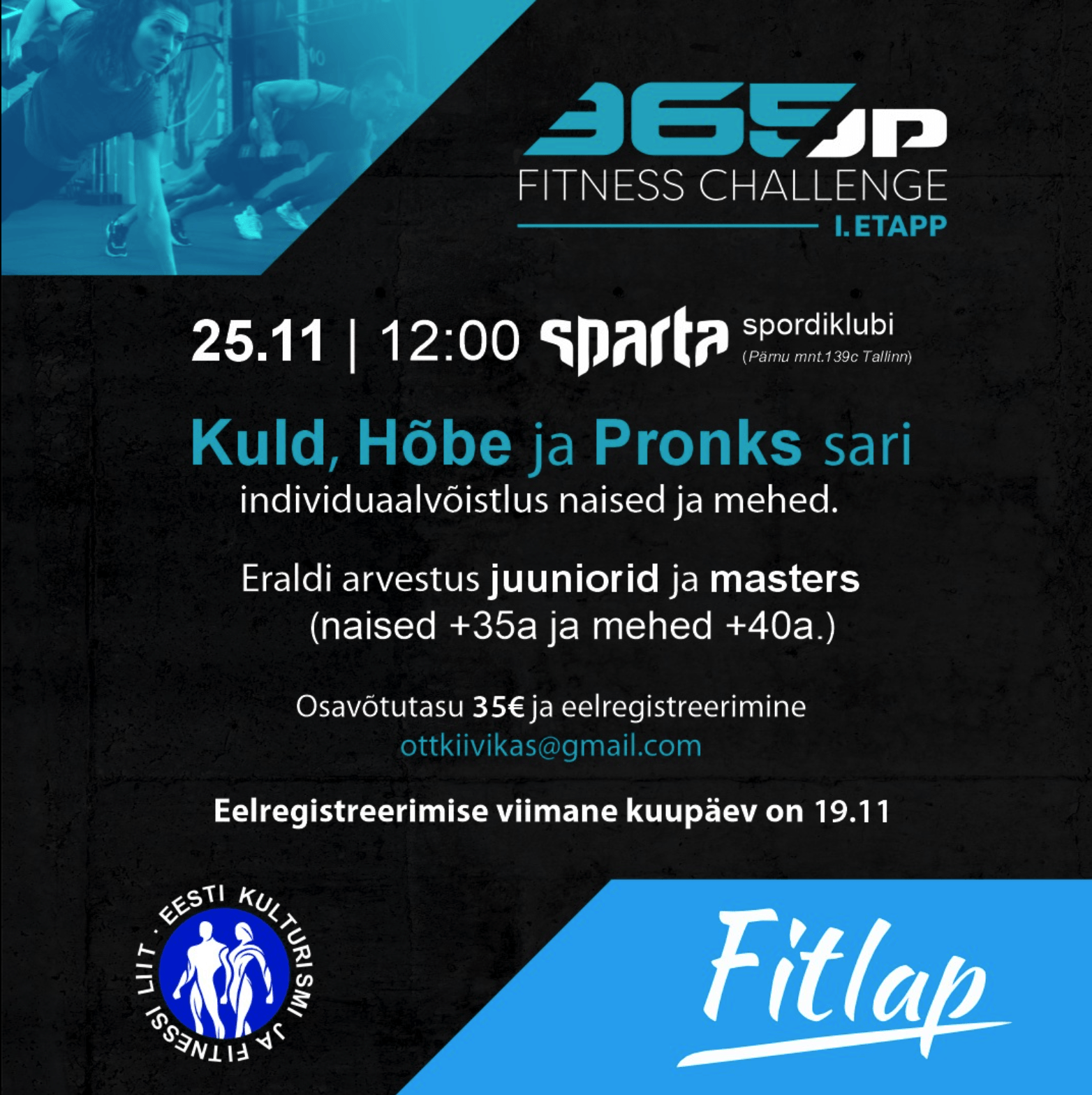 ● Osavõtutasu Fitness Challengil osalejatele on igal tavaetapil 35€ (tasutakse kohapeal võistluspäeval sularahas.)