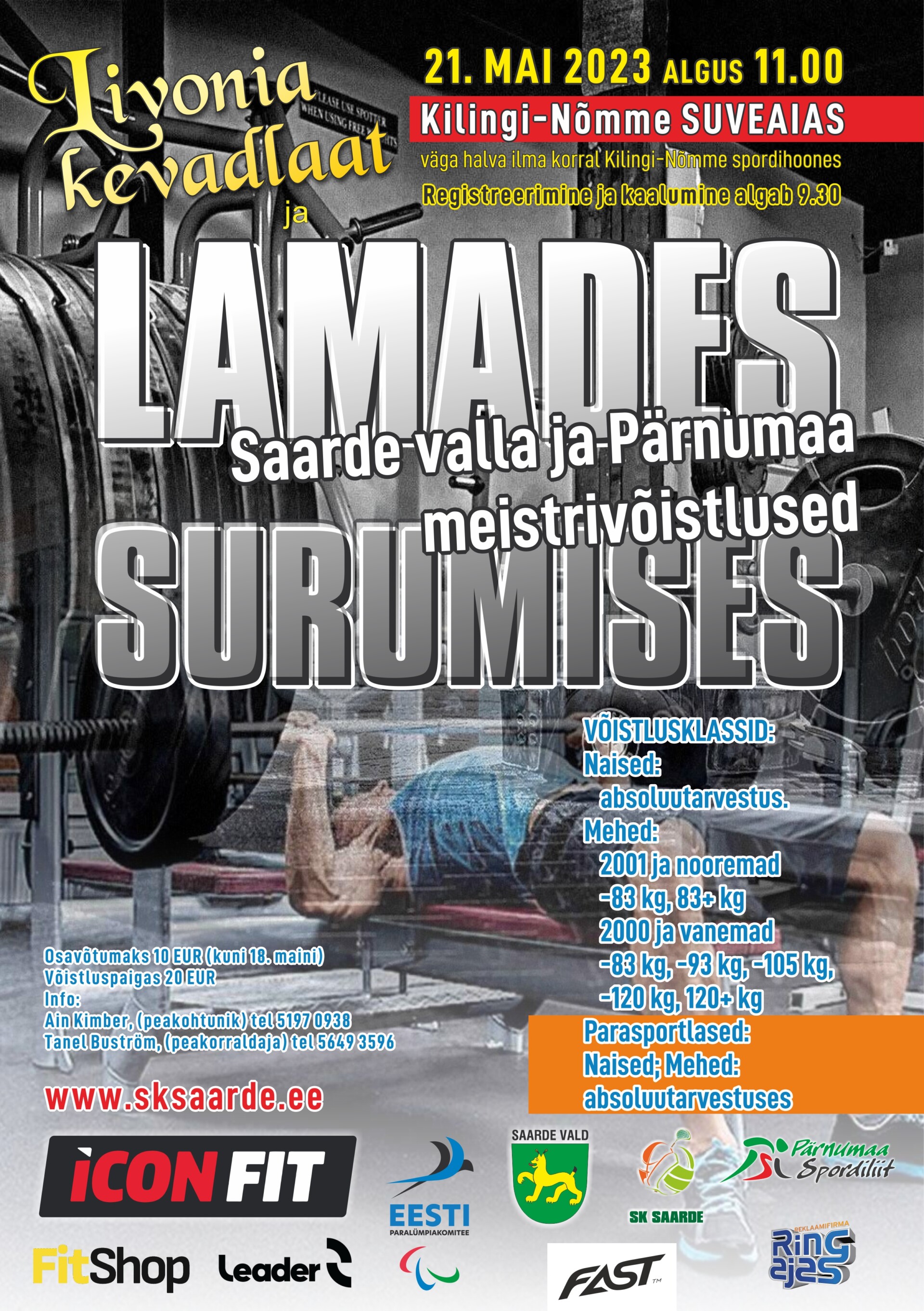 Osavõtutasu kuni 18. maini 10.- €. SK Saarde a/k EE802200221013976311